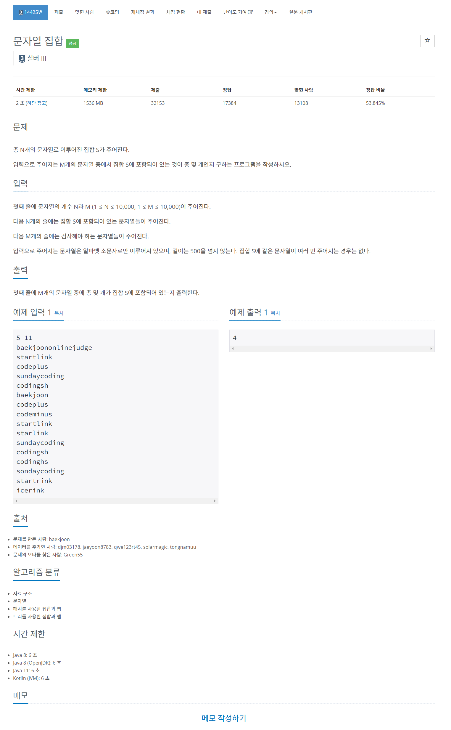 14425번: 문자열 집합